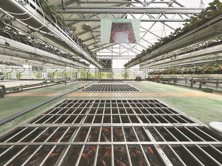 在长丰县陶楼镇,占地15亩,投资1300万元的光伏+智慧农业项目,将蔬菜大棚的棚顶光伏发电、农业种植、水产养殖、观光采摘、科研开展有机地融为一体,实现可再生能源发电、鱼菜共生。其中棚顶光伏每年可发电68万度,节约碳排放480吨,发电收益26万元/年,鱼菜收入200多万元/年。