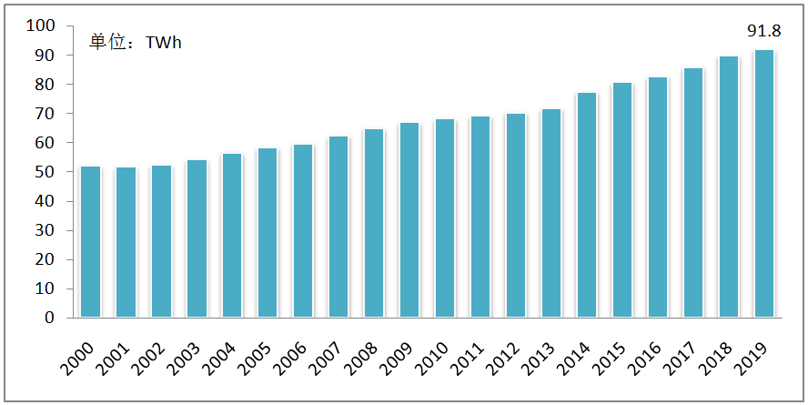 近年来,全球地热发电市场不断增长。根据国际能源署数据,2019年全球地热发电量达到91.8太瓦时,同比增长3%(见图6)。